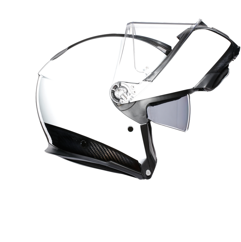 Zur Gänze aus Carbonfaser (Schale und Kinnstütze) hergestellt, erreicht diese spezielle Struktur die gleiche Schutzleistung wie der Pista GP R aus der Moto GP in einer unglaublich leichten Konstruktion, die ein Höchstmaß an Komfort und Sicherheit bietet. Auf ein horizontales 190°-Sichtfeld wie beim menschlichen Auge ausgelegt, wurde der SportModular im Windkanal für überlegene Geräuscharmut, aerodynamische Stabilität und Belüftung konzipiert.