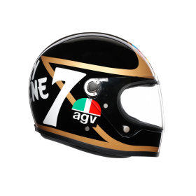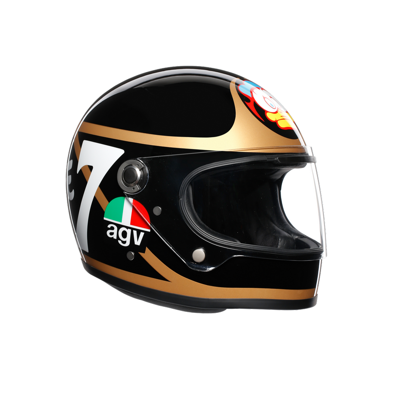 Sein Talent, seine Weltmeistertitel und seine spektakulären Rennen sind noch lange nicht alles. Ein Athlet schreibt dann Geschichte, wenn er Leidenschaft und Emotionen in anderen entfacht und einen unbändigen Siegeswillen zeigt. Wir feiern mit diesem einzigartigen Helm den unvergleichlichen Barry Sheene. Die Glückszahl 7, der immer präsente Donald Duck und sein Name auf der Rückseite. Die Legende lebt weiter.