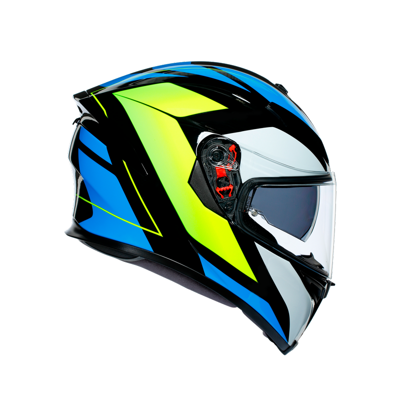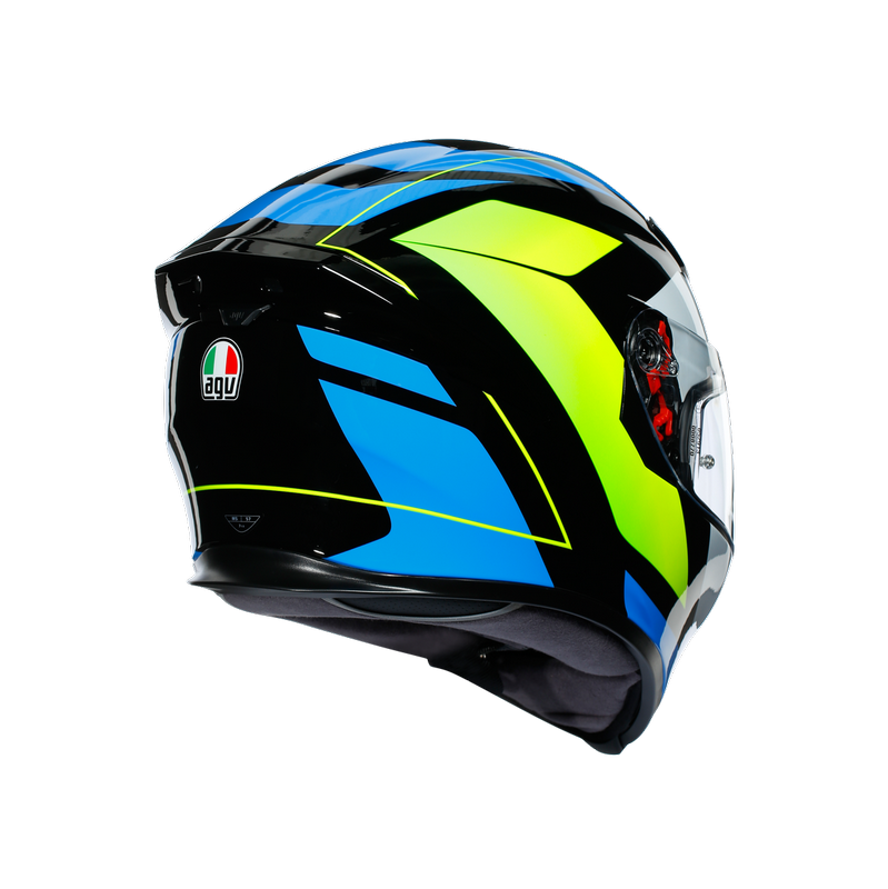 AGV aktuellste Ausführung dieses erstklassigen Sporthelms zeichnet sich durch einen neuen Aufbau der Innenschale auf, für die High-Performance-Gewebe verwendet wurden, die an jenen Stellen, die den Kopf berühren, über keinerlei Nähte verfügen, wodurch eine extrem komfortable Passform sichergestellt wird. Die sehr leichte Außenschale besteht aus Kohlenstoff und Glasfasern, während Stabilität und aerodynamische Leistung durch den integrierten Spoiler maximiert werden. Das Integrated Ventilation System (IVS) sieht Luftöffnungen in der Helmschale vor und darüber hinaus ist der Helm mit einer absenkbaren Sonnenblende, einem abnehmbaren Nasenschutz und einem neuen Windschutz ausgestattet, durch den der Lärm äußerst geringe gehalten werden kann.