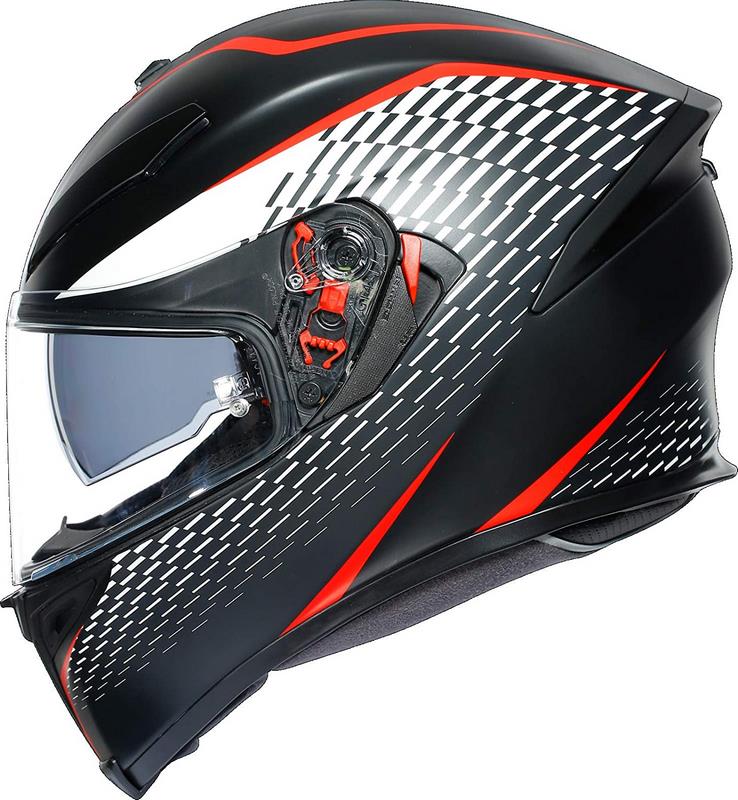 AGV aktuellste Ausführung dieses erstklassigen Sporthelms zeichnet sich durch einen neuen Aufbau der Innenschale auf, für die High-Performance-Gewebe verwendet wurden, die an jenen Stellen, die den Kopf berühren, über keinerlei Nähte verfügen, wodurch eine extrem komfortable Passform sichergestellt wird. Die sehr leichte Außenschale besteht aus Kohlenstoff und Glasfasern, während Stabilität und aerodynamische Leistung durch den integrierten Spoiler maximiert werden. Das Integrated Ventilation System (IVS) sieht Luftöffnungen in der Helmschale vor und darüber hinaus ist der Helm mit einer absenkbaren Sonnenblende, einem abnehmbaren Nasenschutz und einem neuen Windschutz ausgestattet, durch den der Lärm äußerst geringe gehalten werden kann.