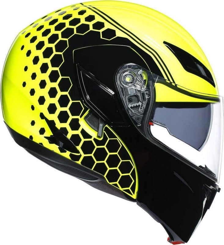 Das modulare Helmkonzept wurde mit dem Compact ST auf eine höhere Stufe gebracht. Der Helm wurde sowohl in der offenen wie in der geschlossenen Position homologiert und sein kompaktes Design bedeutet in genau dieser Konfiguration eine erstaunlich hohe aerodynamische Leistung. Mit integrierter Sonnenblende zum Absenken. Die neue Innenausstattung wurde für höchsten Komfort mit High-Tech-Geweben und sorgfältig angeordneten Nähten umgesetzt. Absolut unschlagbar hinsichtlich seiner Anpassungsfähigkeit und somit sowohl für touristische wie städtische Verwendung bestimmt.