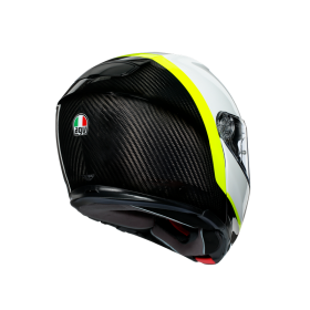 Zur Gänze aus Carbonfaser (Schale und Kinnstütze) hergestellt, erreicht diese spezielle Struktur die gleiche Schutzleistung wie der Pista GP R aus der Moto GP in einer unglaublich leichten Konstruktion, die ein Höchstmaß an Komfort und Sicherheit bietet. Auf ein horizontales 190°-Sichtfeld wie beim menschlichen Auge ausgelegt, wurde der SportModular im Windkanal für überlegene Geräuscharmut, aerodynamische Stabilität und Belüftung konzipiert.