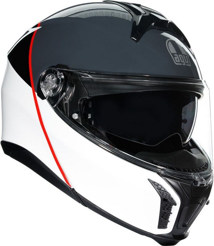 Die vollständige Kontrolle auf der Straße wird durch die AGV Ultravision-Standards garantiert, die ein Sichtfeld von 190° horizontal und 85° vertikal bieten. Diese dem Sichtfeld des menschlichen Auges ähnlichen Werte ermöglichen es, die Straße und die Hindernisse in der Umgebung des Fahrers schneller und klar zu erkennen. Das Visier besitzt die optische Klasse 1 – der höchstmöglichen Klasse, die auch für Korrekturbrillen verwendet wird und jede Verzerrung ausschließt – und wird durch eine abnehmbare Sonnenblende und das Anti-Beschlag-System ergänzt. Max Pinlock 120 ermöglicht perfekte Sicht unter allen Bedingungen. Das kommt vollständig der Sicherheit und Konzentration zugute.