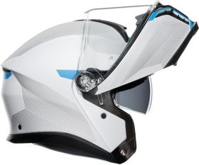 Die weiche Innenseite aus Ritmo- und Shalimar-Gewebe mit Passformregulierungssystem gewährleistet die sofortige Aufnahme von Feuchtigkeit und Schweiß. Die wasserdichten Profile aus Kunstleder halten das Wasser auch an Tagen mit besonders starken Regenfällen von der Innenseite des Helms fern. Mit dem AGV Mikroöffnungssystem kann das Visier für den Luftdurchlass offengehalten werden und dabei stabil am Kinnschutz befestigt bleiben.