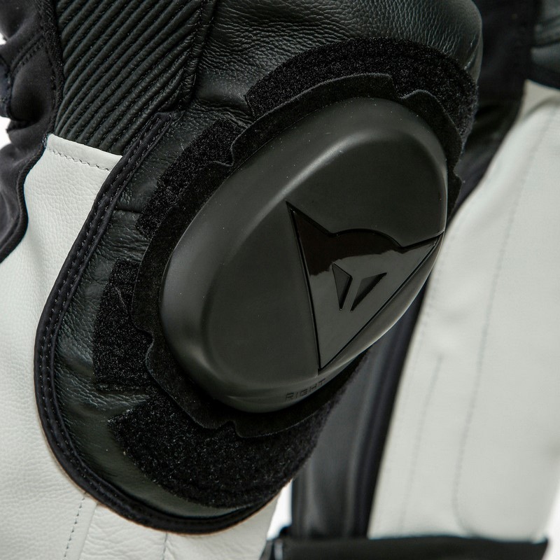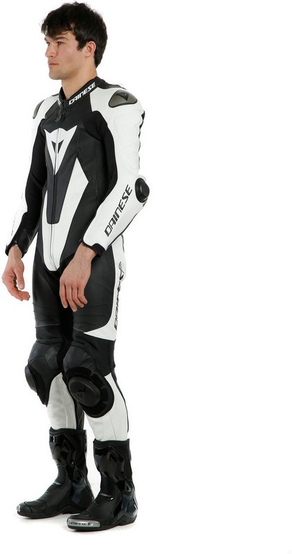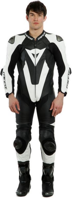 The iconic racing leather suit, the essence of Dainese.Laguna Seca 5 is the latest evolution of the legendary Dainese one-piece suit, made entirely from premium full grain cowhide leather, ready to face any challenge on the track with the confidence of champions.Its structure was conceived to give maximum freedom of movement on the saddle. Its superior ergonomics ensure the highest level of safety: exclusive Dainese Tri-Axial system on the back and three-way stretch leather inserts allow for perfect mobility while guaranteeing the same level of abrasion resistance as the other leather layers. Inserts in XF Arrow, the cutting-edge Dainese material blending great elasticity and wearability with the resistance of leather, for enhanced mobility.Safety is guaranteed by protectors in composite material on elbows and knees, soft Pro-Shape 2.0 protectors on the hips, and by the exclusive construction of the floating shoulder with replaceable and customizable composite protectors and aluminum plates. The metal shoulder plates - a Dainese hallmark and exclusive patent - help the rider to slide in the event of a fall and reduce the risk of dangerous rolling. This is a crucial difference from plastic materials, which wear out faster through abrasion as they have greater grip on the asphalt.The revolutionary D-Tec Racing Core interior, easily detachable and washable, guarantees a new level of breathability and comfort, with perforation placed in the most strategic areas of the suit offering optimal ventilation during sessions held even during the hottest days.This suit is ready to compete. The RSS 3.0 system features wide dual compound sliders, firmly secured to the suit yet quickly replaceable. The aerodynamic hump is built to hold a waterbag kit, so that the integrated water system developed for all motorcycle GP suits can be fitted. This system is connected to a compatible helmet, allowing professional riders to effortlessly drink during any stage of the competition and guaranteeing perfect hydration throughout the race.For even more accurate motorcycle handling, the inner sides of the knees are fitted with the innovative KGI system, special inserts ensuring the most secure grip to tackle even the most extreme bends in total safety. Short and Tall size models..d-pdp-video {width:100%; height:200px;} @media only screen and (min-width:758px) { .d-pdp-video {height:600px;} }