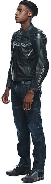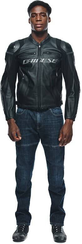 Racing 4 leather motorcycle jacket, an iconic piece of the Dainese collection, with an athletic and tight fit to take you through sports riding. Made of premium Tutu cowhide with Nanofeel lining, it is equipped with four air vents, two on the sides and two on the chest, to offer optimized temperature. A snug fit and flexibility are ensured by a fit adjustment system at the hips, the S1 bi-elastic fabric sections, and the Microelastic 2.0 leather inserts on the back and arms, which increase freedom of movement, while maintaining standard skin protection. The Dainese Racing 4 motorcycle jacket is equipped with a zipper at the hem, which allows it to be connected to motorcycle pants, and EN 1621.1-certified composite protectors at the elbows and shoulders, which are further protected by interchangeable external aluminum plates – a distinctive Dainese technology – designed to support and facilitate sliding in case of a fall, thus avoiding the dangerous risks of rolling on asphalt..d-pdp-video {width:100%; height:200px;} @media only screen and (min-width:758px) { .d-pdp-video {height:600px;} }
