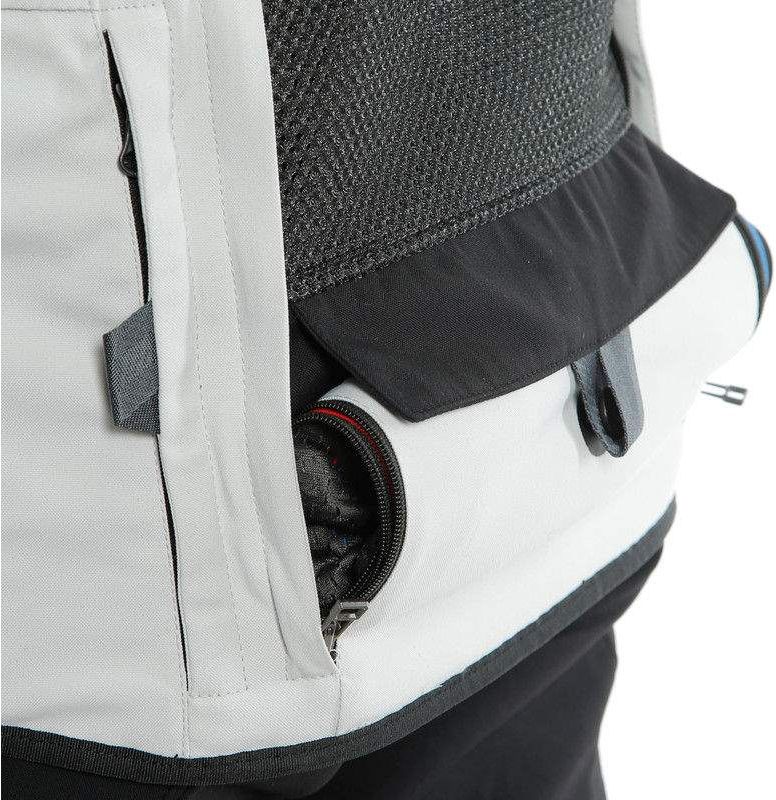 The evolution of an adventure touring icon. The properties of this genuine all-season jacket make it completely waterproof, thermal, and ventilated depending on the chosen configuration and the riding conditions. The GORE-TEX® membrane and the 2-in-1 lightweight internal jacket make this the ideal choice for every season and any route, knowing you have exceptional protection from adverse weather conditions. The inserts are made of Trixior, Dainese's exclusive hyper stretch fabric that is both breathable and resistant to abrasion, providing additional protection and a fit that adapts perfectly to the rider. The CE Level 2 approved elbow and shoulder protectors complete the garment and guarantee the highest Dainese safety standards.
