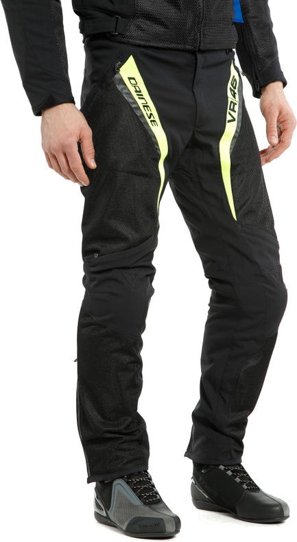 Superior Dainese safety standards are ensured by rigid composite protectors on the knees and strategically placed reflective inserts, guaranteeing optimal visibility even in poor lighting conditions.