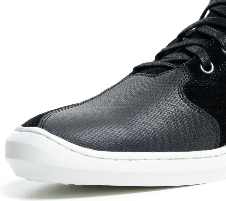 Lightness of step for uncompromised city living. This certified shoe perfectly combines a modern look with the technical quality of sports-derived materials such as microfiber. Rigid TPU inserts ensure heel and malleolus protection, while the Dainese differentiated sole is designed to offer maximum performance. Whether walking or riding, this innovative solution is ideal for everyday use.