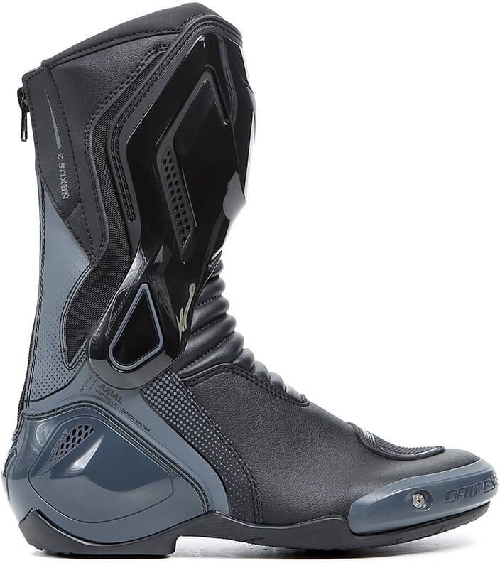 The Dainese Nexus 2 sport motorcycle boots are made of microfiber and D-Stone, with a nylon insert at the heel. They are equipped with replaceable thermoplastic sliders, the exclusive Dainese Axial Distortion Control System, and nylon inserts on the heel to guarantee high levels of protection, maximum comfort, and lightness.