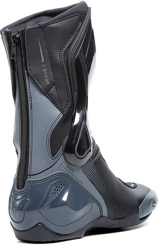 The Dainese Nexus 2 sport motorcycle boots are made of microfiber and D-Stone, with a nylon insert at the heel. They are equipped with replaceable thermoplastic sliders, the exclusive Dainese Axial Distortion Control System, and nylon inserts on the heel to guarantee high levels of protection, maximum comfort, and lightness.