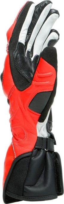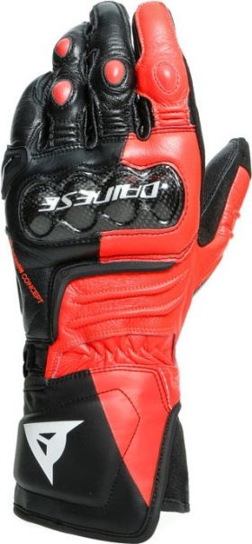 Significant sensitivity and protection, for maximum confidence through every corner. This certified glove, designed around a rider's requirements, maximizes sensitivity and comfort with its exclusive construction and premium leather palm. The composite inserts, in carbon on the knuckles and polyurethane on the palm and at the finger joints, ensure the highest Dainese safety standards. The graphics are designed to match perfectly with the Dainese Mistel two-piece suit.