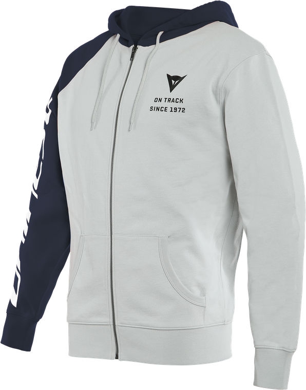 The Dainese PADDOCK FULL-ZIP hooded sweater embodies the competitive spirit that drives champions on the most prestigious tracks of the MotoGP™.