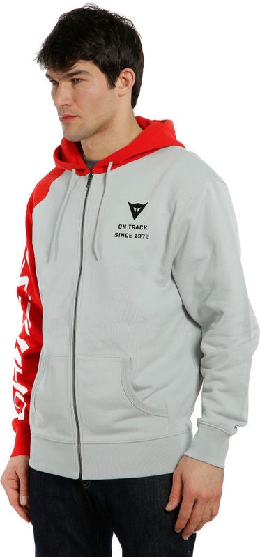 Dainese PADDOCK FULL-ZIP HOODIE, Glacier-Gray/Lava-Red/Black | 20189683481C005