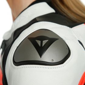 Dainese is safety: protectors in composite material on elbows and knees, soft Pro-Shape 2.0 protectors on the hips, and exclusive construction of the floating shoulder with replaceable and customizable composite protectors and aluminum plates. The metal shoulder plates - a Dainese hallmark and exclusive patent - help the rider to slide in the event of a fall and reduce the risk of dangerous rolling. This is a crucial difference from plastic materials, which wear out faster through abrasion as they have greater grip on the asphalt.