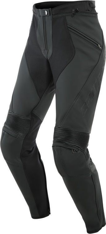 They ensure the confidence to take on everyday challenges of motorbike riding with the added comfort and safety of leather. A freshly developed Dainese icon. They feature a Tutu leather structure, certified protectors at the hips, and rigid protectors at the knees that can be adjusted or removed using the external zipper. A double zipper on the calf ensures an excellent fit, specifically designed for a woman, and makes for a garment that is very easy to wear. Practicality and protection for ultimate control on the road.