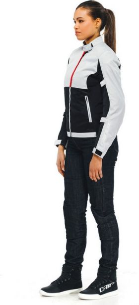 The women’s Risoluta Air Tex Lady motorcycle jacket is a versatile, all-season garment that combines protection and ease of use. Constructed in resistant, anti-abrasion fabric, it allows for safe, comfortable riding even in summer, due to its excellent breathability. The removable thermal lining ensures peace of mind on the coldest of days, providing the ideal level of insulation with which to enjoy the road in confidence. Dainese safety standards are upheld with composite protectors on the shoulders and elbows, which can be removed if necessary. A dedicated pocket allows for the insertion of a G1 or G2 back protector.