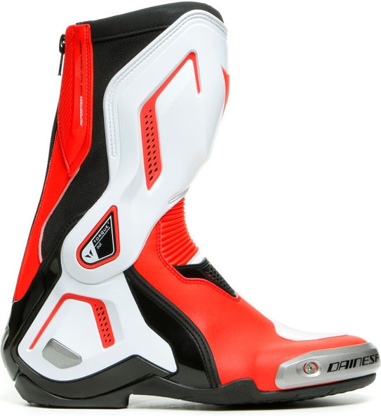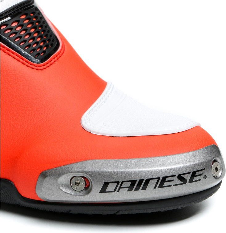 This racing boot is made of microfiber and D-Stone™ fabric with high grip TPU inserts. Practicality and safety are guaranteed by the replaceable magnesium sliders, the protective nylon on the shell, heel, and toe, and the exclusive D-Axial system in TPU that prevents any twisting of the foot. A real champion of lightness and performance, this boot features an internal retention band, rapid fastening and air channeling systems, magnesium inserts on the outer side and heel, and flexible joints to increase comfort when off the bike. Safety and confidence for maximum performance on any track.