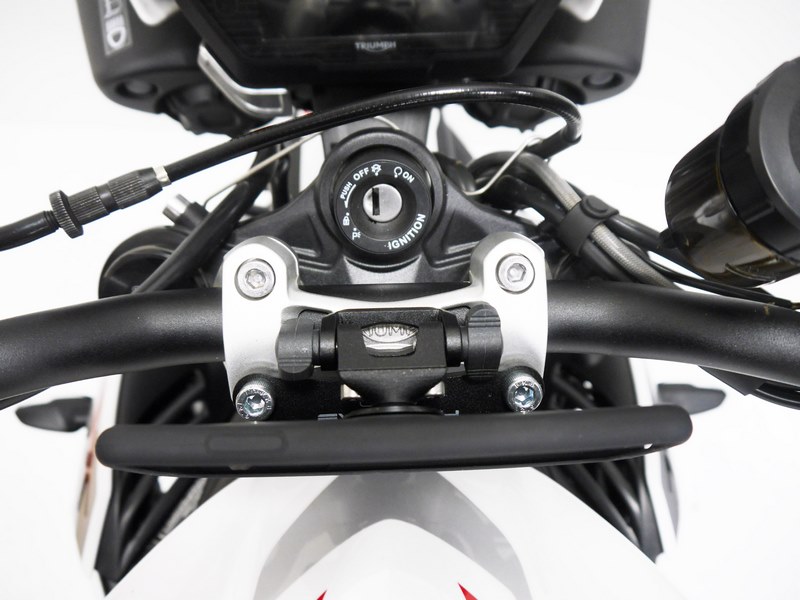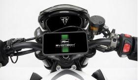 Features of EP SP Connect Compatible Sat Nav Mount for the Triumph Street Triple R Attaches directly to the handlebar centre clamp with no modification required SP Connect mounting point fully integrated to the bracket Wing screws allow screen angle to be altered Bracket CNC machined from lightweight aluminium Black powder coated for durability Online pictorial fitting instructions are found on this webpage What is a Motorcycle Phone Mount? Mounted via the handlebar centre clamp, the EP SP Connect Compatible Sat Nav Mount for the Triumph Street Triple R is visible in the rider's peripheral vision for easy sat nav guidance on the move. The SP Connect interface allows quick and easy access to your smartphone whilst the dual stage locking system confidently secures your phone to the motorbike. The simple to install smartphone GPS bracket comes with all required fixings included in the kit. Note: Our mounting bracket works in conjunction with SP micro stem mount alu #53122 and the anti vibration module #53135. SP Connect interface plate #53122, smartphone case, connection wire, and smartphone are not included.