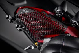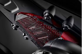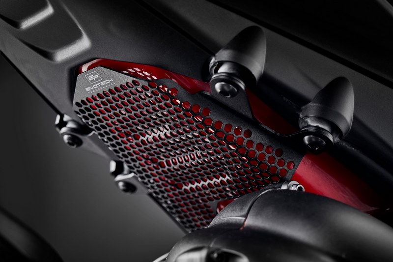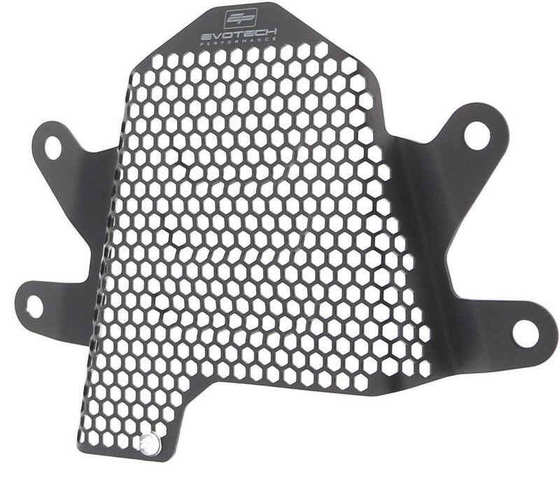 Evotech Performance fuel tank cover guard attaches to your bike using existing mounting points. No modifications are required to your motorcycle. Our fuel tank gaurd can be installed with or without the standard pillion pegs. Hexagonal hole pattern to optimise airflow whilst providing maximum protection from road debris. CNC machined from aircraft quality aluminium. Powder coated black for longevity. All required fittings are supplied with the kit. Easy to follow pictorial instructions are available for download. Registered Community Design No. EU Reg. Design: 008262380-00029UK Reg. Design: 9008262380-00029