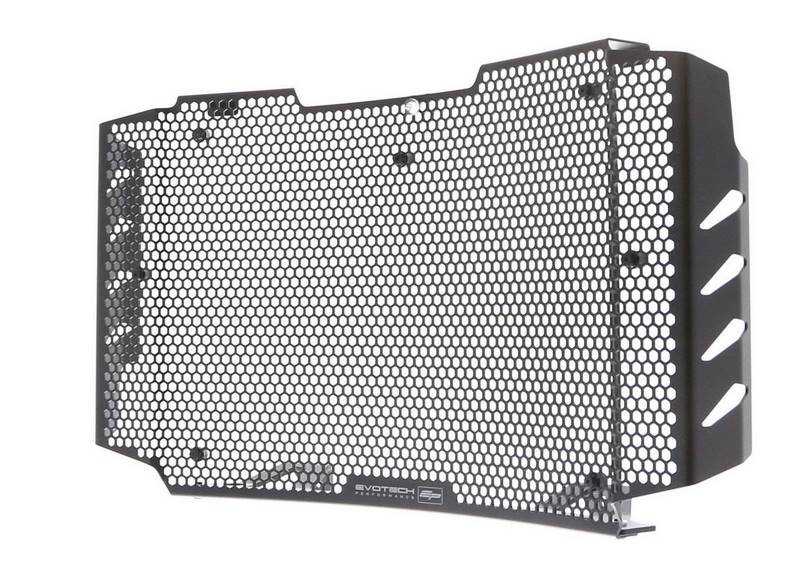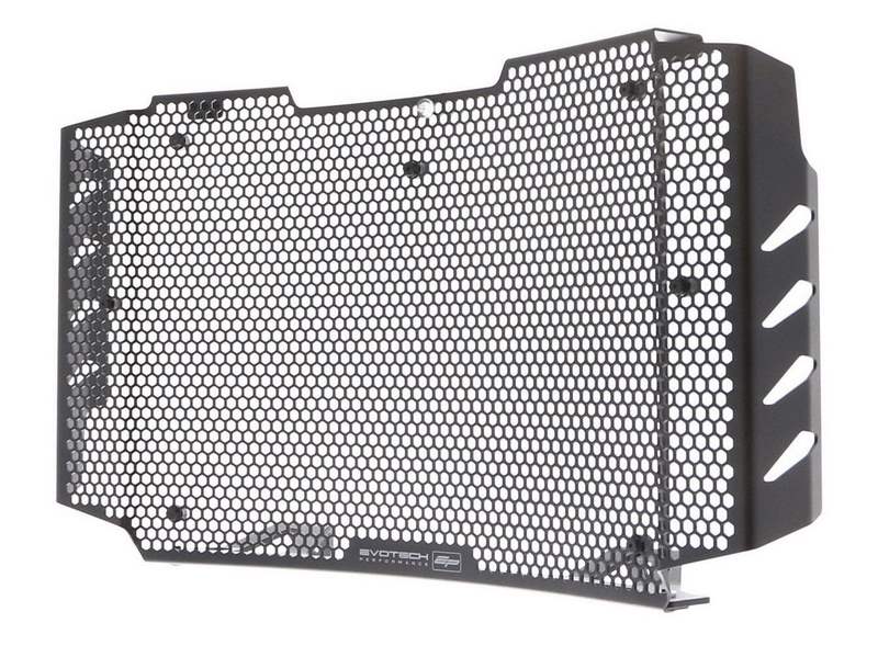 Evotech Performance radiator guards attach to your bike's existing mounting points. No modifications are required to your motorcycle. Hexagonal hole pattern to optimise airflow whilst providing maximum protection from road debris. CNC machined from aircraft quality aluminium. Powder coated black for longevity. All required fittings are supplied with the kit. Easy to follow pictorial instructions are available for download. Registered Community Design No. EU Reg. Design: 008262380-00015UK Reg. Design: 9008262380-00015