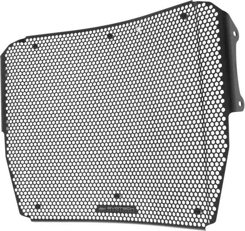 Simply put, an EP Radiator Guard protects the Triumph Speed Triple RS radiator from damage caused by road debris (stones, mud, dropped waste etc), while at the same time allowing cool air to pass through. The radiator's thin, soft aluminium cooling fins easily bend, and misaligned fins can restrict cooling air, which can lead to overheating. The radiator's internal core is also susceptible to being holed by stones that can be picked up by the front tyre or other traffic and flung directly into the radiator. Leaking coolant will make the Triumph Speed Triple RS overheat, which, in turn, can lead to engine damage.