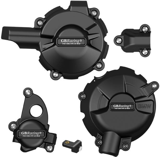 SET CONTAINS: Secondary Engine Cover: Alternator/Generator (EC-S1000XR-2020-1-GBR); Secondary Engine Cover: Clutch/Gearbox (EC-S1000RR-2019-2-GBR); Secondary Engine Cover: Pulse/Timing (EC-S1000RR-2019-3-GBR); Pulse Fixing Bracket (EC-S1000RR-2019-3-FB-GBR); Secondary Engine Cover: Water Pump: (EC-S1000RR-2019-5-GBR)