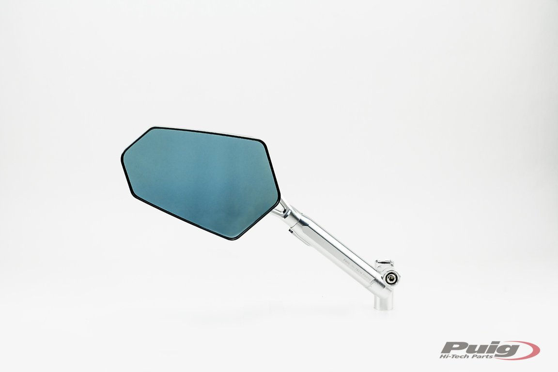 Do you want to give your bike an adventure touch? Is exploration what you are all about? The Puig Explorer approved mirror is your perfect choice. Designed especially for adventure touring motorcycles, it is a simple and minimalist mirror that will withstand all types of weather while riding. It is a piece made from machined billet aluminium, which guarantees reduced weight and the option to adjust it according to our needs, both in inclination and in extension thanks to its 4 axes of rotation and its 30 mm extension. To guarantee a perfect finish, the Explorer mirror is anodized. You can choose between different colors (black or aluminum) or the combination of both. The Explorer mirror adapts to the handlebar stem, but can also be adapted to the original fairing of the bike by using adapters. There are some models that also require an adapter for mounting on the rod, therefore, must be reviewed before purchase.