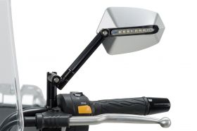 Verbessern Sie das R-Image Ihres Motorrads und verleihen Sie ihm einen aggressiveren und wettbewerbsfähigeren Charakter mit den Rückspiegeln Puig GTI. Gefertigt aus Billet-Aluminium, mit einem eloxierten hinteren Ende und homologiert, wird es das perfekte Zubehör für Ihr Motorrad sein. PUIG präsentiert das Teil in zwei Ausführungen, schwarz oder eloxiertem Aluminium und in bis zu 4 verschiedenen Modellen. Dank seiner Bearbeitung ist der GTI-Spiegel sowohl in der Neigung als auch in der Höhe verstellbar und verfügt über entspiegeltes Glas, um Sichtprobleme während der Fahrt zu vermeiden. Das Highlight des Spiegels ist neben seinem Aussehen die integrierte Blinkleuchte, die sowohl für den Fahrer als auch für den Rest des Fahrzeugs für mehr Sicherheit sorgt. Der Puigs GTI Rückspiegel kann an einer Stange oder der Originalverkleidung des Motorrads montiert werden. Inklusive Adapterkit M10x1,25 (Linksgewinde).
