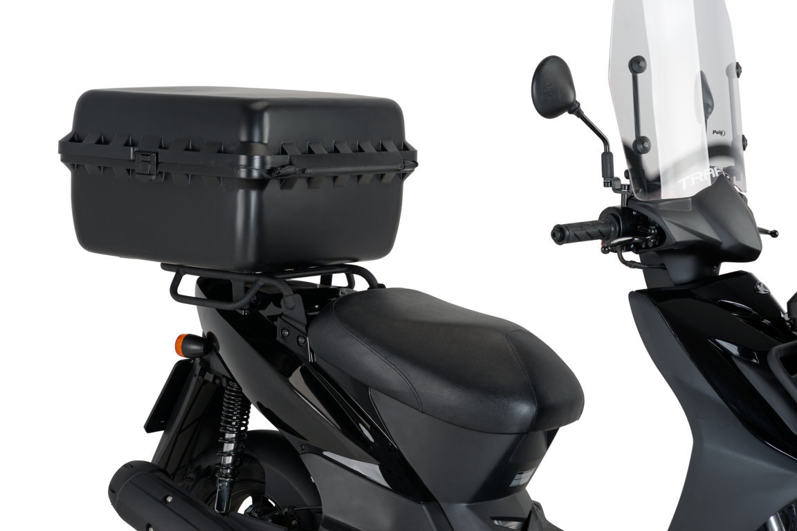 PUIG has three models of top boxes for transporting objects with your motorcycle, the Big-Box, Maxi-Box and Mega-Box. The Big-Box is a chest made of polypropylene, a very resistant material, which will keep your items safe. PUIG offers two types of top boxes depending on the capacity needed: 60 and 90 liters. To adapt better to your motorcycle, it is available in three colors: black, red and white. The top box has a lock and key. Spare parts for the lock are available if required. A support to mount the top box on your motorcycle is not included.