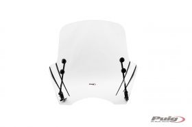 Renew your bikes windshield with the T.X. from Puig for Scooters. Designed for the most competitive models of the 2018 market, Puig manufactures the piece in 4mm PMMA (Polymethylmethacrylate). It is impact resistant and with great aerodynamic capacity. The new T.X. guarantees an avant-garde and innovative design, a new protection against inclement weather and a barrier against pollution present in large cities. In addition, a new safety measure for the rider against insects or objects. Puig provides the piece in transparent finish and its installation to the bike will be easy while aided by the classic Puig installation instructions.