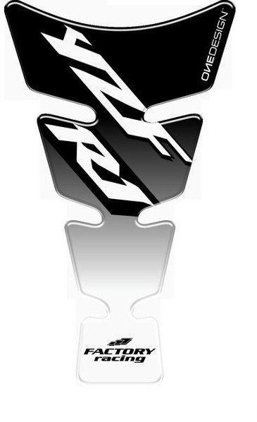 Tankpad mit einem Standard-Form mit dem Motorrad-Modell in den zentralen Abschnitt, entweder schwarz oder silber, je nach der Farbe des Fahrradtanks. Wir haben zwei Farben: schwarz und silber.