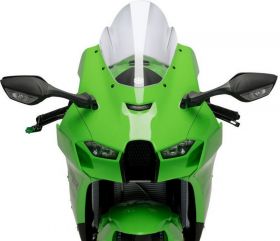 Die Z-Racing-Scheiben sind so konzipiert, dass sie aerodynamisch effizienter sind als die serienmäßigen Scheiben. Sie wurden vollständig im virtuellen Windkanal getestet, um eine Verbesserung des aerodynamischen Koeffizienten (Cx) und des aerodynamischen Schutzes für den Fahrer zu gewährleisten. Dank ihrer doppelten Höhe leiten sie den Wind ab, der sonst auf den Helm und den oberen Bereich des Oberkörpers treffen würde. In der Zwischenzeit nehmen die Seitenkanäle den Luftstrom auf und leiten ihn zur Seite, um den Luftdruck an den Schultern des Fahrers zu verringern.