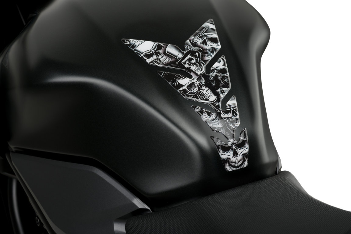 Give your motorcycle more character and protect a sensitive area of the vehicle with the Skull Party Black & White tank pad from Puig. Made of high quality plastic material, resistant and flexible against impacts and scratches from elements that may arise during the route, the tank protector will become your greatest ally for the care and protection of your vehicle.