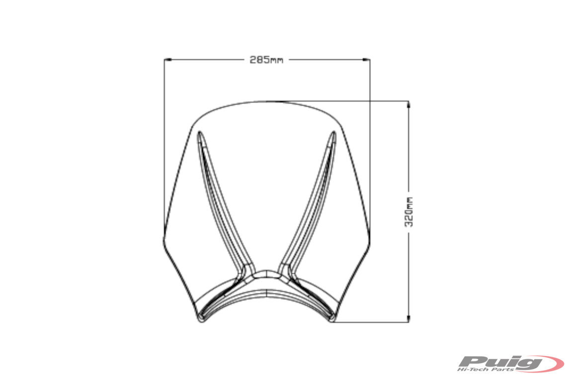 Designed and manufactured in Barcelona, the new windshield is made of 3mm high impact acrylic material, UV resistant. Its total measurements are 285mm wide by 320mm high. In addition, it has rounded edges of Ø4mm, a fact that makes it comply with the strictest European safety regulations.