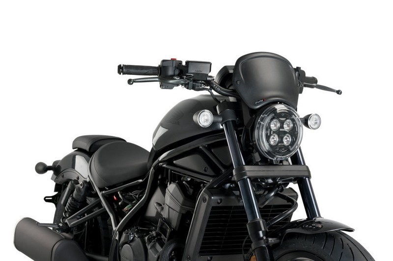 Die Puig-Frontplatte ist für die gängigsten Modelle von Retro-Vintage-Motorrädern erhältlich, in diesem Fall wird ein spezieller Montagesatz angeboten. Darüber hinaus hat Puig auch eine Referenz zur Verfügung, um die Frontplatte mit einem universellen Montage-Kit zu montieren, um die Platte auf Retro-Bikes, die nicht über spezifische Hardware anzupassen.