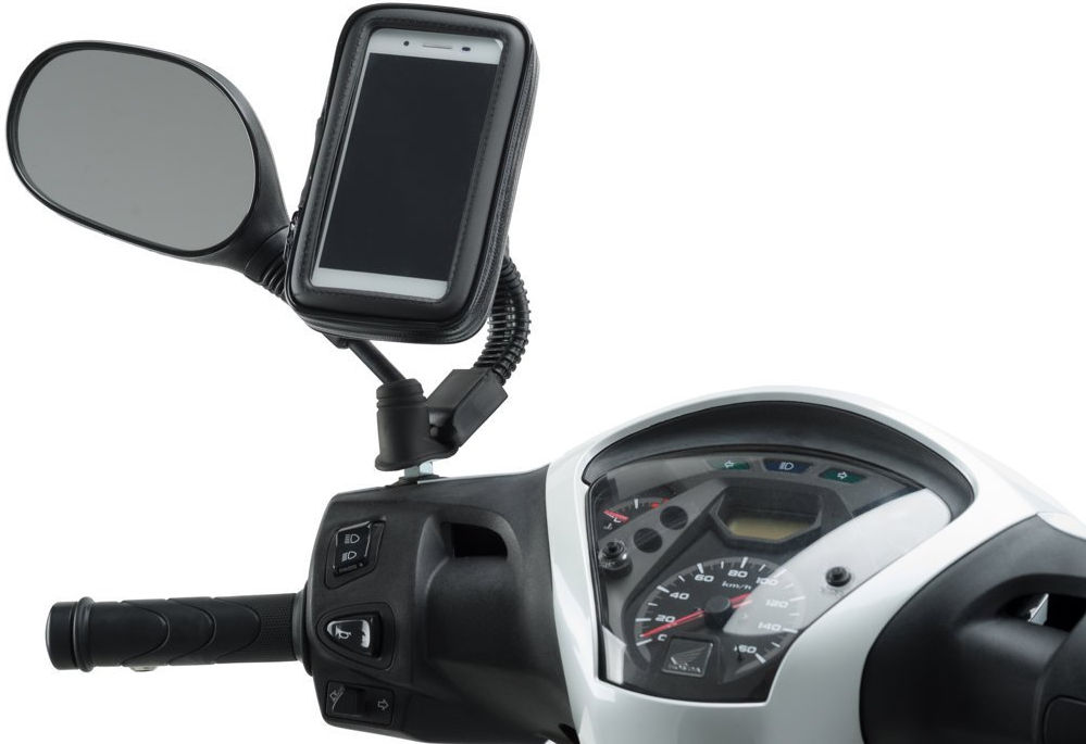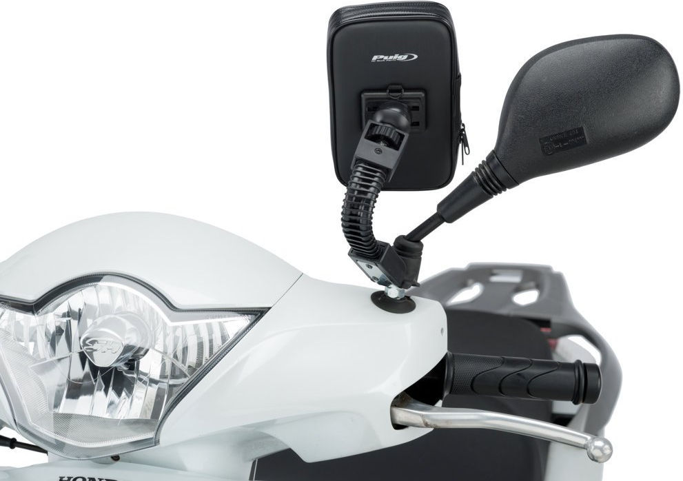 Wir von Puig haben eine Reihe von Zubehör und Halterungen entwickelt, um Ihr Smartphone während Ihrer Reise zu schützen. Die Puig Handytasche schützt Ihr Smartphone vor möglichen Stürzen, Stößen und Wasser, während Sie bei Bedarf mit ihm interagieren können. Die Tasche passt sich an jeden Handytyp an, da sie für 5 und 6,3 Zoll Bildschirme erhältlich ist. Puig bietet mehrere Möglichkeiten, die Hülle durch verschiedene Arten von Halterungen an Ihr Motorrad anzupassen. Wir haben Befestigungen an der Basis des Rückspiegels, an der Stange des Rückspiegels oder am Lenker