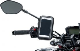 Wir von Puig haben eine Reihe von Zubehör und Halterungen entwickelt, um Ihr Smartphone während Ihrer Reise zu schützen. Die Puig Handytasche schützt Ihr Smartphone vor möglichen Stürzen, Stößen und Wasser, während Sie bei Bedarf mit ihm interagieren können. Die Tasche passt sich an jeden Handytyp an, da sie für 5 und 6,3 Zoll Bildschirme erhältlich ist. Puig bietet mehrere Möglichkeiten, die Hülle durch verschiedene Arten von Halterungen an Ihr Motorrad anzupassen. Wir haben Befestigungen an der Basis des Rückspiegels, an der Stange des Rückspiegels oder am Lenker