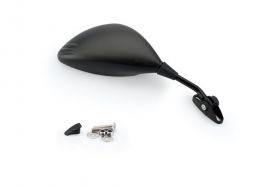 Dieser Spiegel hat ein fließendes Design, das elegante und aerodynamische Formen schafft. Die homologierten Abmessungen des konvexen Spiegels gewährleisten eine gute Sicht, und das endgültige Einstellsystem mit Kugelgelenk ermöglicht die manuelle Einstellung des Spiegels. Die verschiedenen Formate ermöglichen die Montage an den meisten Motorrädern, mit oder ohne Verkleidung. Der Hauptrahmen und der Fuß bestehen aus gespritztem Thermoplast mit mattschwarzer Struktur, die Verbindungsstütze zwischen beiden ist aus Stahl gefertigt.