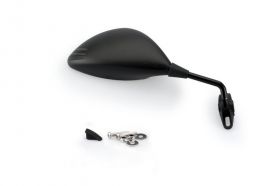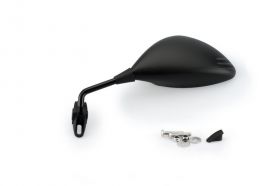 Dieser Spiegel hat ein fließendes Design, das elegante und aerodynamische Formen schafft. Die homologierten Abmessungen des konvexen Spiegels gewährleisten eine gute Sicht, und das endgültige Einstellsystem mit Kugelgelenk ermöglicht die manuelle Einstellung des Spiegels. Die verschiedenen Formate ermöglichen die Montage an den meisten Motorrädern, mit oder ohne Verkleidung. Der Hauptrahmen und der Fuß bestehen aus gespritztem Thermoplast mit mattschwarzer Struktur, die Verbindungsstütze zwischen beiden ist aus Stahl gefertigt.
