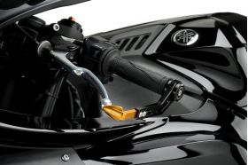 Der Schutz für den Kupplungshebel ist aus der Entwicklung des gleichen Teils für die Bremse hervorgegangen. Ein Element, das bei Wettbewerbsmotorrädern unverzichtbar geworden ist. Mit diesem Teil, das für die Straße homologiert ist, schöpft Puig Hi-Tech Parts sein Wissen als Mitarbeiter der führenden Teams in den Königsklassen. Dank dieser Erfahrung haben wir ein Element entwickelt, das den Schutz und die Integration dieses Teils in das Originalmotorrad als Ganzes in den Vordergrund stellt. Aus diesem Grund wurde ein bidirektionales Verstellsystem (längs und senkrecht) des Protektors in Bezug auf die Manschette entwickelt.