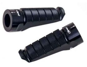 Die Puig-Racing-Fußrasten wurden speziell für R-Motorräder entwickelt und bieten dem Fahrer und Beifahrer maximalen Halt. Ihr attraktives Sportdesign macht sie zur perfekten Ergänzung für die radikalsten Motorräder, deren Ästhetik einen noch extremeren Touch erhält. Sie messen 72 mm in der Länge und 27 mm in der Breite und wiegen nur 90 g. Die Ergonomie ist ein Schlüsselfaktor in ihrem Design, das so konzipiert wurde, dass die freie Höhe zum Boden vergrößert wird, wodurch der Neigungswinkel des Motorrads erhöht werden kann. Sie sind in der Neigung einstellbar und haben Markierungen, die eine größere Präzision bei der Montage zu gewährleisten. Die Rennsport-Fußrasten bieten dem Fahrer ein hohes Maß an Vertrauen, sowohl bei ruhiger Fahrt als auch in den Momenten, in denen der Fahrer versucht, die Grenzen auf der Rennstrecke oder bei Rennen auszuloten, wenn man maximale Sensibilität für alle Komponenten des Motorrads benötigt. Sie werden in den Farben Blau, Schwarz, Gold, Silber, Rot, Orange und Grün hergestellt, so dass jeder Biker die für ihn am besten geeignete Farbe finden kann. F