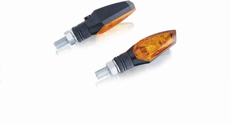 Puig Eye-Blinker bieten eine diskrete Note der Anpassung für die meisten Motorräder auf dem Markt. Es handelt sich um herkömmliche Blinker mit schwarzer Glühbirne und bernsteinfarbenem Glas. Die kompakten Abmessungen (58,7x21 mm) ermöglichen eine einfache Montage an jedem Motorrad. Der Blinkersatz ist homologiert und kompatibel mit den Ersatzlampen Amber oder transparent Star, 12V und 23W oder 12V und 6W, die in Schachteln mit 10 Stück geliefert werden.