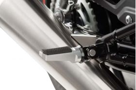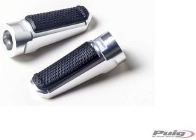 Die Puig Sport-Fußrasten sind ideal für die Personalisierung des Stils von Naked Bikes. Sein attraktives Design und aus eloxiertem Aluminium macht sie stehen auf dem Motorrad, dessen Bild auf Sport aussieht verbessert. Die Sportfußrasten sind 72 mm lang und 27 mm breit und wiegen nur 90 g. Ihr ergonomisches Design erhöht die freie Höhe zum Boden, was einen größeren Neigungswinkel des Motorrads ermöglicht. Sie sind in der Neigung verstellbar und enthalten einige Markierungen, um die Präzision in ihrer Montage zu gewährleisten. Sie sind mit einem Gummi versehen, das den Komfort und die Griffigkeit sowohl für den Fahrer als auch für den Beifahrer verbessert. Erhältlich in blau, schwarz, gold, silber, rot, orange und grün, kann der Benutzer die passenden Fußrasten finden, oder im Gegensatz dazu, die Farbe seines Motorrads. Sie haben die TÜV-Zertifizierung und das ABE-Dokument