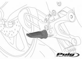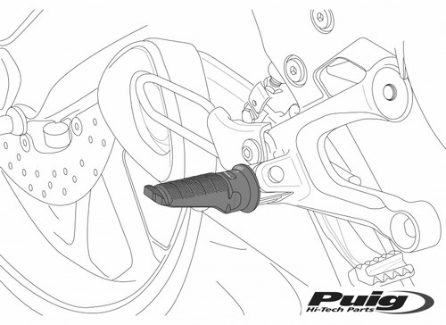 Die Puig Sport-Fußrasten sind ideal für die Personalisierung des Stils von Naked Bikes. Sein attraktives Design und aus eloxiertem Aluminium macht sie stehen auf dem Motorrad, dessen Bild auf Sport aussieht verbessert. Die Sportfußrasten sind 72 mm lang und 27 mm breit und wiegen nur 90 g. Ihr ergonomisches Design erhöht die freie Höhe zum Boden, was einen größeren Neigungswinkel des Motorrads ermöglicht. Sie sind in der Neigung verstellbar und enthalten einige Markierungen, um die Präzision in ihrer Montage zu gewährleisten. Sie sind mit einem Gummi versehen, das den Komfort und die Griffigkeit sowohl für den Fahrer als auch für den Beifahrer verbessert. Erhältlich in blau, schwarz, gold, silber, rot, orange und grün, kann der Benutzer die passenden Fußrasten finden, oder im Gegensatz dazu, die Farbe seines Motorrads. Sie haben die TÜV-Zertifizierung und das ABE-Dokument