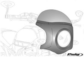 Die Halbverkleidung ist eine der exponiertesten Komponenten des Motorrads und eine wirtschaftlichere Lösung im Falle eines Bruchs eines der Stücke, die es bildet, Puig vertreibt die losen Ersatzteile des Gehäuses und der Kuppel zu geben. Puig hat in seiner Hi-Tech Parts Linie von Produkten mit universellen Halbverkleidungen von Vintage-Stil, mit einer schwarzen Farbe Körper oder Kohlenstoff wie und mit dem Hohlraum für den vorderen Scheinwerfer von 195 mm Durchmesser oder von 180 mm. Alle von ihnen mit ihren entsprechenden Bildschirm, zusätzlich zu den Armaturen.