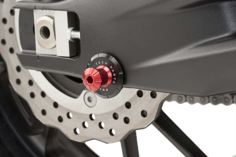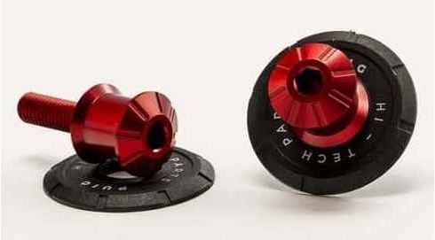 Spools dienen als Führung, um einen Ständer zu montieren und Ihr Motorrad schnell und sicher anzuheben. In diesem Fall präsentieren wir die Spool Pro von Puig. Er ist aus einem eloxierten Aluminium-Block gefertigt (geringes Gewicht von 32 g) und schützt die Schwinge vor möglichen Kratzern, da er mit einer schwarzen Nylonscheibe mit eingraviertem Puig Hi-Tech Parts versehen ist. Um die Montage zu erleichtern, sind die Führung für die Montage der Spule und ihr Gewinde aus demselben Block gefräst. Beachten Sie, dass die Spool Pro paarweise angeboten wird und obwohl die Referenzen mit der überwiegenden Mehrheit der Motorräder passen, müssen die Abmessungen des Stücks und des Gewindes vorher überprüft werden