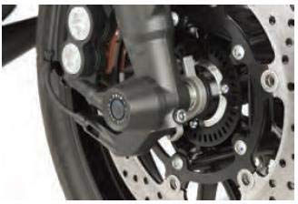 Ein praktischer, hochwiderstandsfähiger Vordergabelschutz im Rennsport-Look für Ihr Motorrad. Gefertigt durch einen Nylonblock. Gewicht von 265 Gramm, schützt Gabel und Schwinge